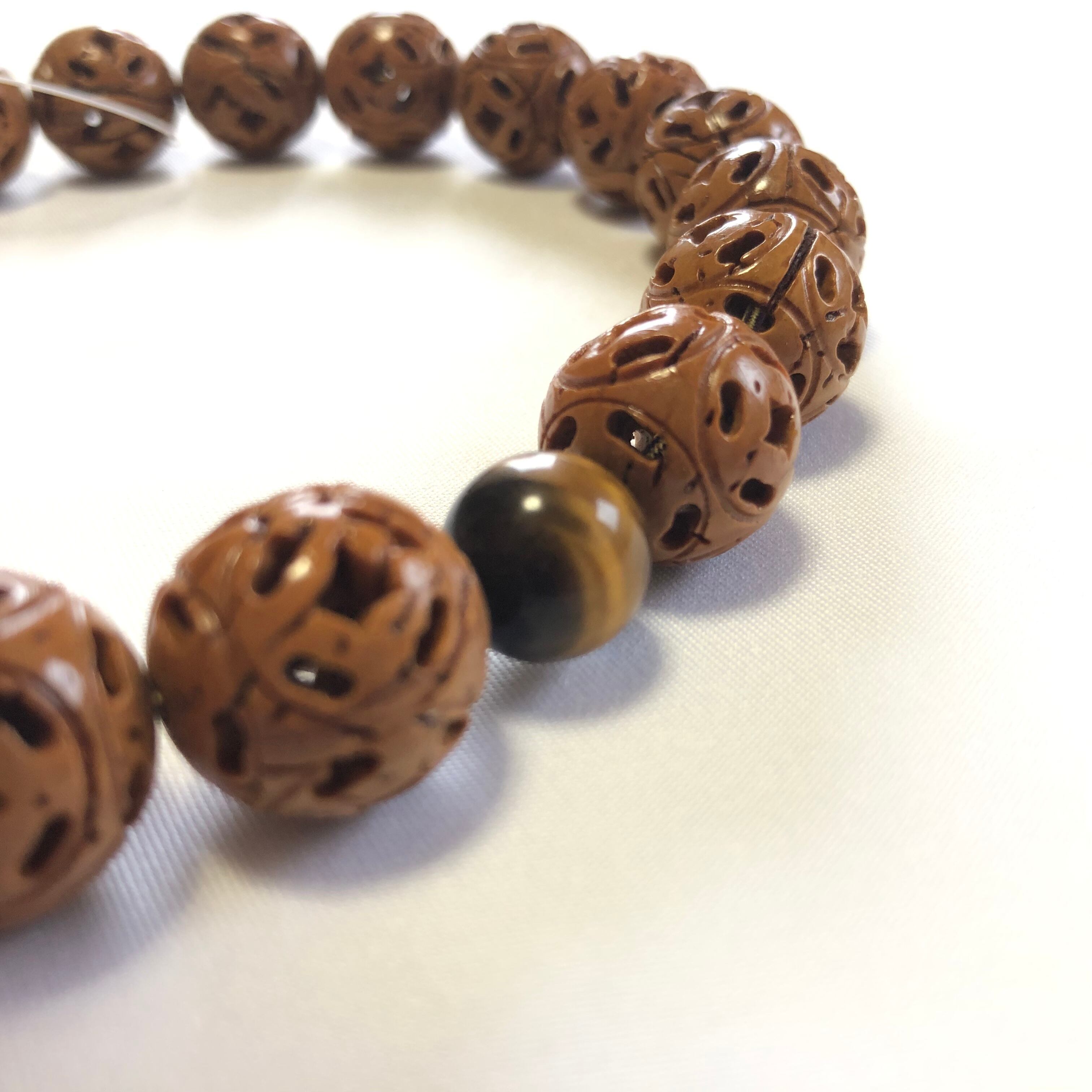 主玉一つ一つが透かし彫り仕上げになっている、とても細かな作業で作り上げられたお数珠です。